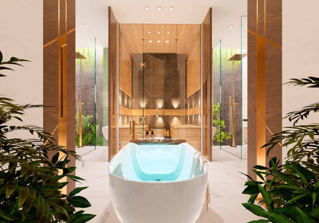 Enjoy smart glass technology. With a mere touch of a button, the glass seamlessly transitions from crystalline clarity to satin opaqueness in the blink of an eye. Elevate your surroundings as innovation dances with luxury to create an experience that combines our lavish indoor shower oasis seamlessly merging modern luxury with the embrace of nature. Enveloped by verdant foliage and botanical backdrop. This is more than a mere shower, it’s an immersive escape into a world where each moment spent under the cascade of warm water becomes a sensory journey of rejuvenation.