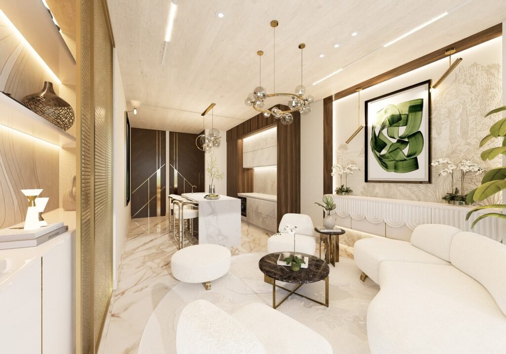 Indoor and outdoor spaces seamlessly merge, thanks to expansive floor-to-ceiling windows and sliding glass doors that beautifully frame the panoramic vistas of Zona Romántica. This transition is complemented by a balanced clean lines and modern fixtures with classic nuances, all while being energized by vibrant touches reminiscent of Art Deco. The residence is further enhanced with cutting-edge smart technology, offering control over features such as plugs and locks for unmatched convenience. Centralized smart systems allow residents to effortlessly manage cooling and lighting with just a few taps, while additional tech innovations provide the flexibility to customize audio surround sound settings, ensuring the perfect ambiance for any occasion.